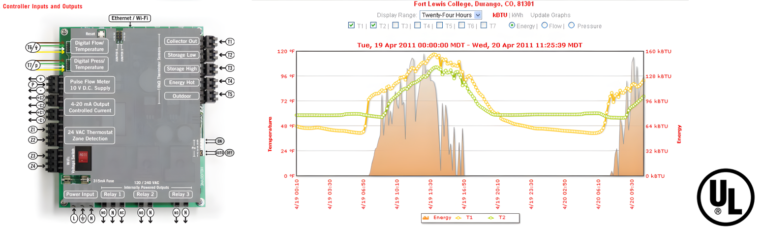 Built by Heliodyne, the Delta-T Pro precisely manages solar heating systems and offers advanced features like expanded sensor inputs, energy metering, and performance monitoring. With 3rd generation models featuring Modbus, Ethernet, and optional WiFi connectivity, you can track and adjust system performance remotely. Designed for DHW, pool, space, and combination heating, Delta-T Pro controllers deliver long-term efficiency and seamless integration into nearly any solar hot water setup.